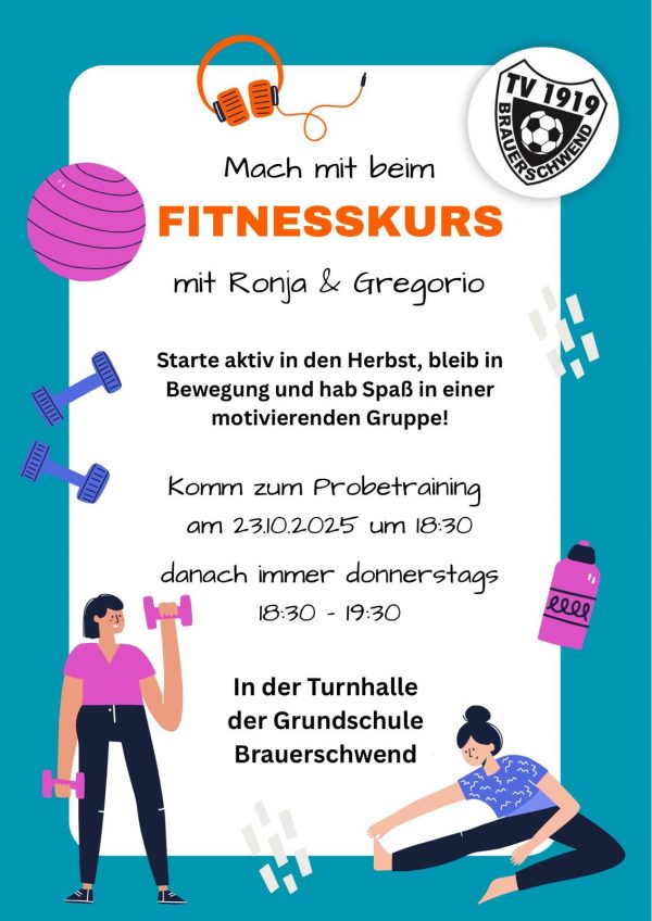 Am 25.10.2025 ist es wieder soweit! Beginn des neuen Fitnesskurses des TVB unter neuer Leitung um 18:30 Uhr in der Turnhalle der Grundschule Brauerschwend. Komm zum Probetraining! Startet aktiv in den Herbst, bleibt in Bewegung und habt Spaß in einer… Weiterlesen →